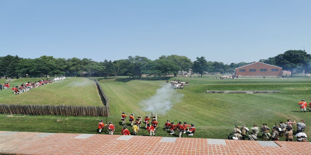 Reenactments sind in den Vereinigten Staaten sehr beliebt. Dabei werden historische Ereignisse (meist kriegerischer art) nachgespielt und ~gelebt. Menschen kleiden sich entsprechend der Zeit, leben in Zelten und kochen über offenem Feuer authentische Speisen. Wir befinden uns auf Old Fort Niagra zur Zeit der Unabhängigkeitskriege, doch seht selbst: