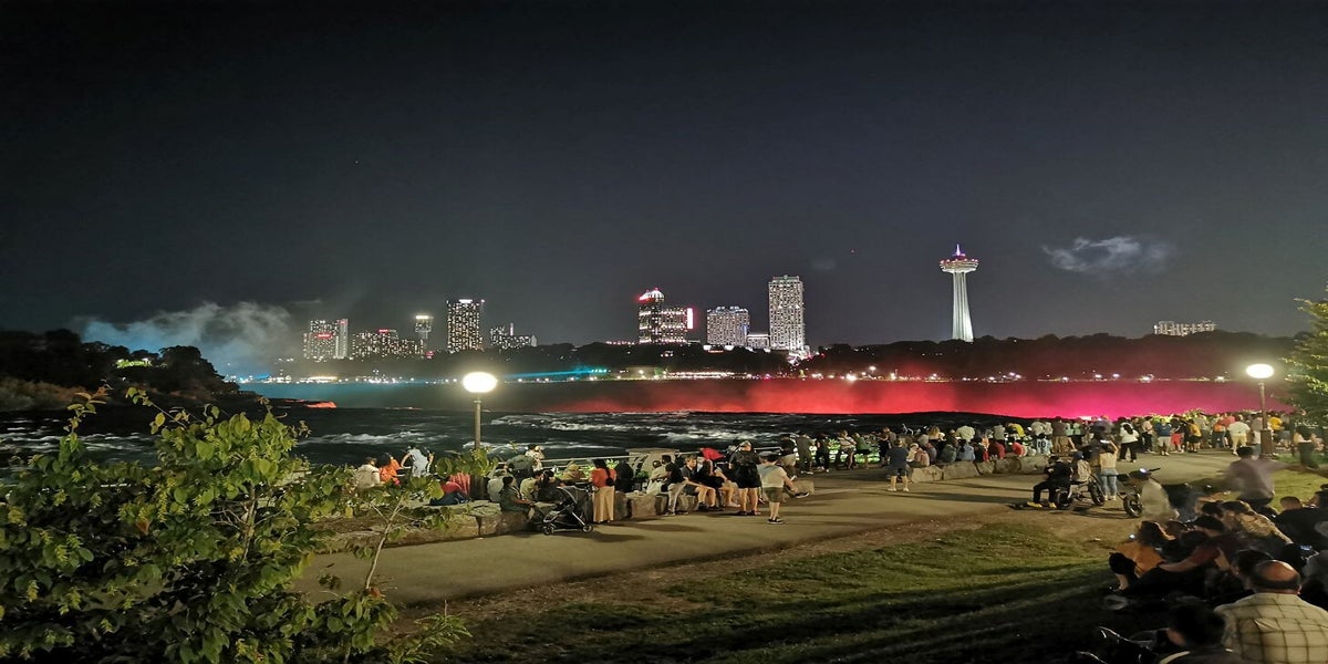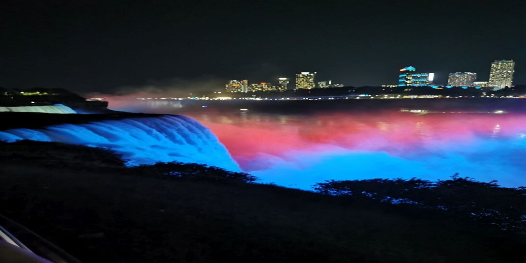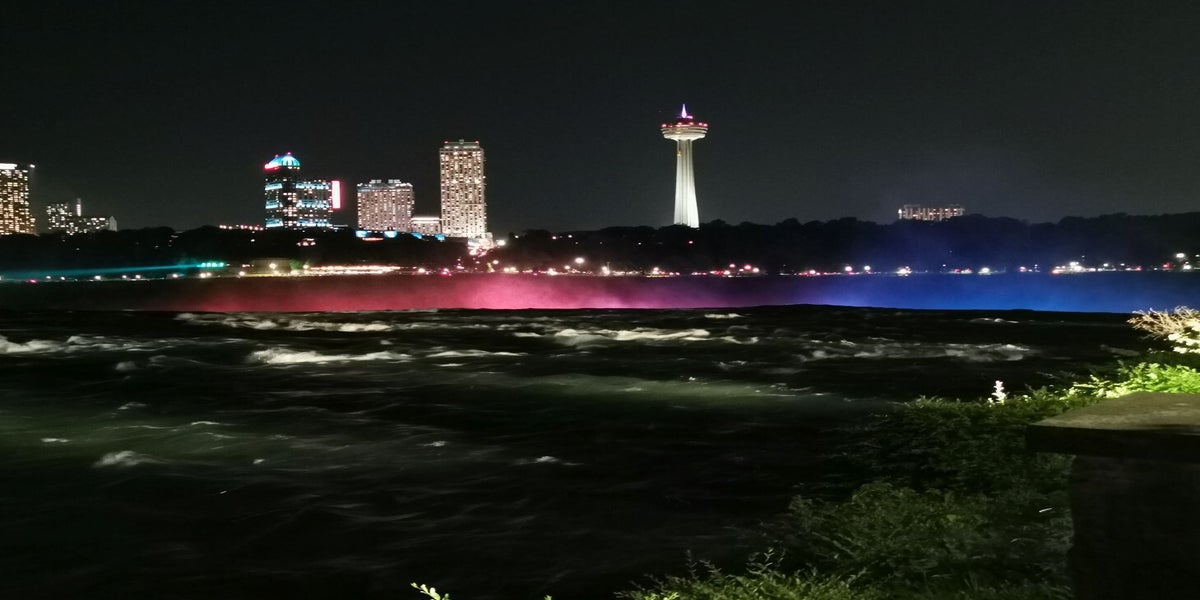 Das ist wirklich sehr beeindruckend. Die Wasserfälle sind in wechselnden Farbspielen angeleuchtet. Auf der anderen Seite kann man Kanada sehen. Als Krönung gab es noch ein Feuerwerk.
